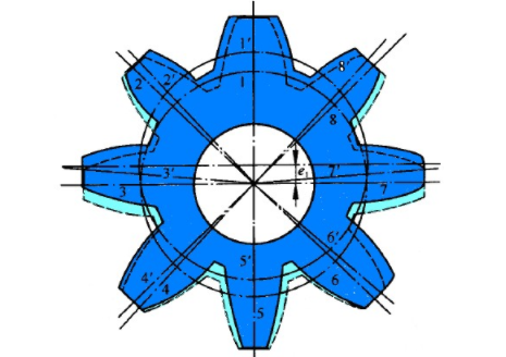 幾何偏心使齒面位置相對于齒輪基準中心在徑向上發(fā)生了變化,加工出來的齒輪一邊齒長,一邊齒短,使齒輪在一轉內產生徑向跳動。