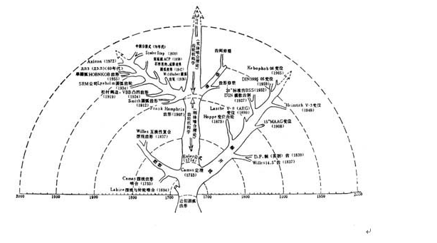 用類似樹枝形式表示齒輪齒形技術(shù)發(fā)展概況的圖。該圖比較形象,比較清楚地表明了各種齒形的發(fā)展順序與年代,同時反應(yīng)了齒形之間的相互關(guān)系。